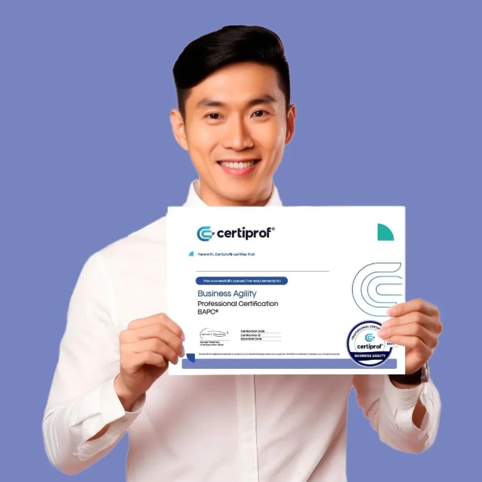 El examen abierto para la Certificación Profesional en Agilidad Empresarial (BAPC™) otorgado por Certiprof® es ideal para cualquiera que quiera comprender los principios y dominios clave de la agilidad empresarial y cómo responder eficazmente a los rápidos cambios del mercado.